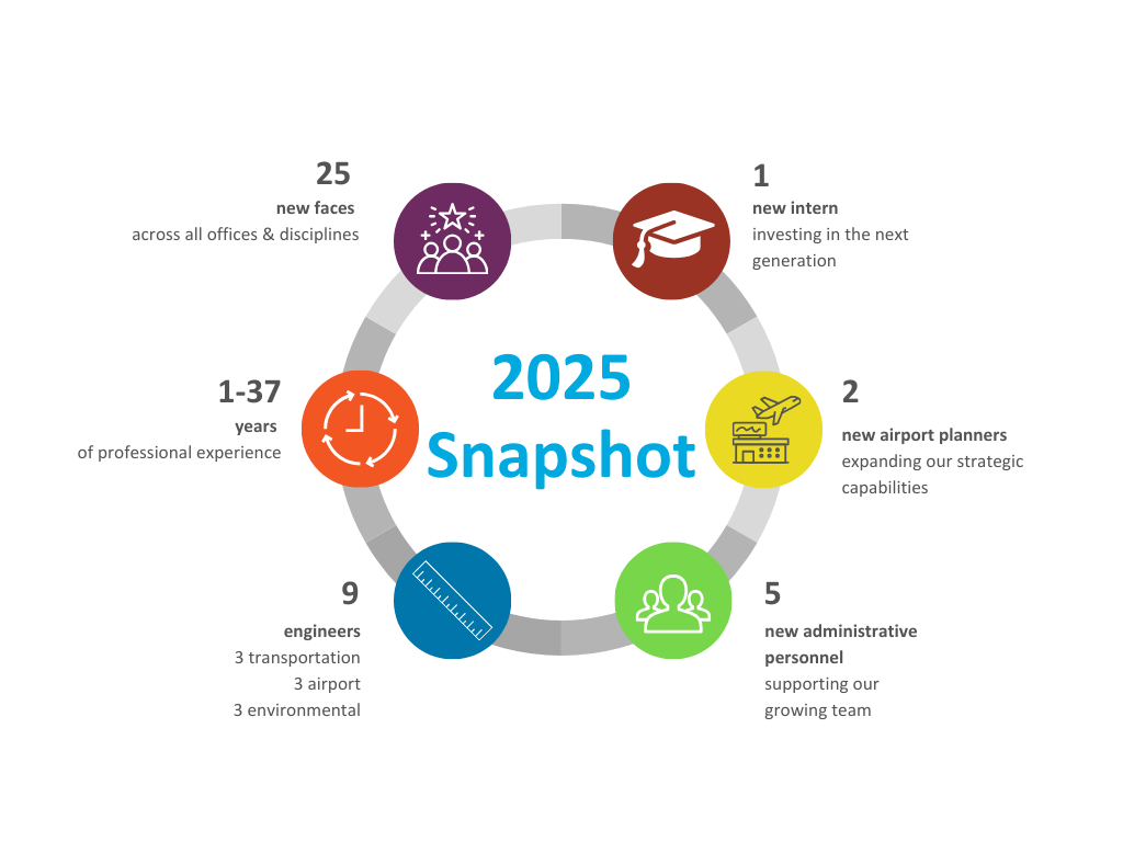 9 Engineers – 3 new Transportation Engineers, 3 Airport Engineers, and 3 Environmental Engineers added to key technical teams
