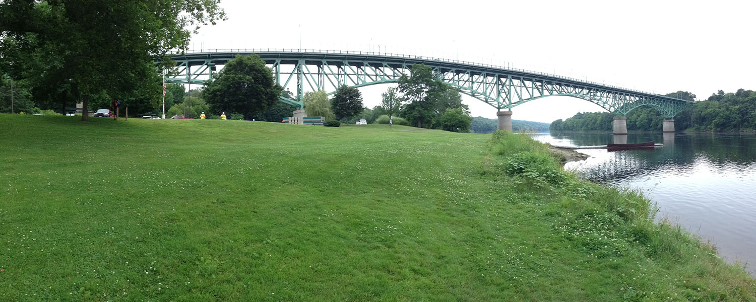 The Augusta Memorial Bridge is an 11 span, 2,092′ long bridge built in 1949 that carries US Routes 201 and 202 and State Route 100 over the Kennebec River. This fracture critical structure consists of five continuous cantilevered, riveted Pratt truss deck spans; five built-up, riveted steel girder spans; and one rolled steel beam multi-beam span. Recent rehabilitations in 2006 and 2012 included replacement of the deck with a 5-3/16” thick half-filed steel grid deck with 1” thick lightweight concrete overfill and repainting of the entire structure.