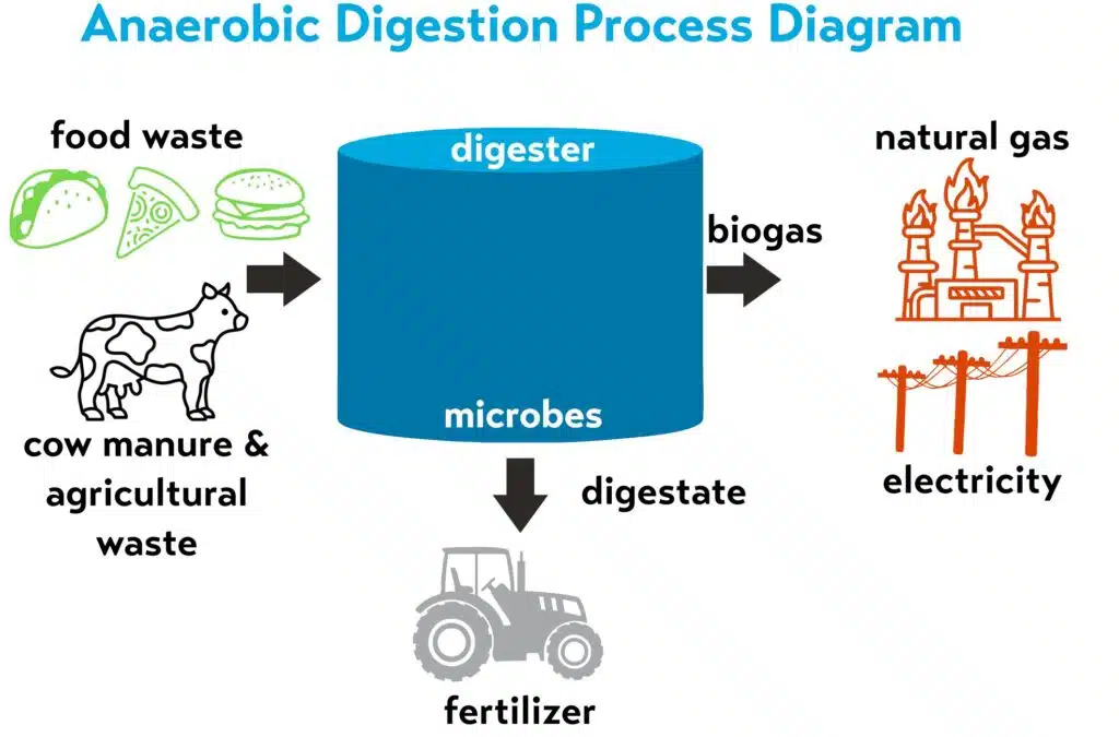 Anaerobic digestion is the conversion of organic matter to renewable energy by a complex community of naturally occurring microorganisms in an engineered environment. Anaerobic digestion and the production of biogas provide many benefits, such as diverting organic waste from landfills, promoting nutrient recovery, reducing greenhouse gas emissions, and producing renewable energy in the form of biogas. Biogas is a byproduct of anaerobic digestion and consists of approximately 60% methane, 40% carbon dioxide, and other trace gases. Once biogas is produced, it can be combusted to create electricity or upgraded into pipeline quality renewable natural gas.